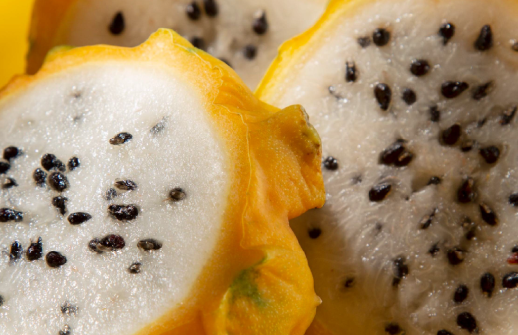 From Ecuador and Colombia, this fruit tastes very sweet, similar to a pear but a little more tropical. The fruit´s interior texture is comparable to that of a kiwi with a white flesh meat and black seeds throughout. Very healthy and considered a superfruit, it has been said to be great source to help the digestive system.