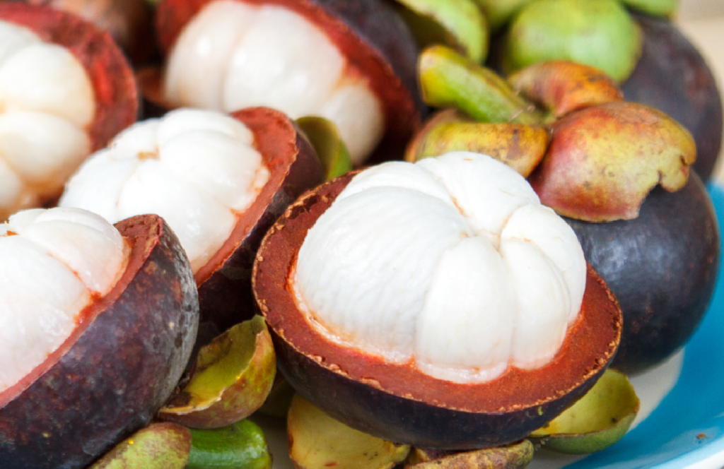 Having an attractive shell of purple to pink color, the Mangosteen is known for its mixture of a sweet and sour flavor. It is made of 5 to 7 seeds covered with white flesh, which give this fruit the attribute of being very easy to consume.